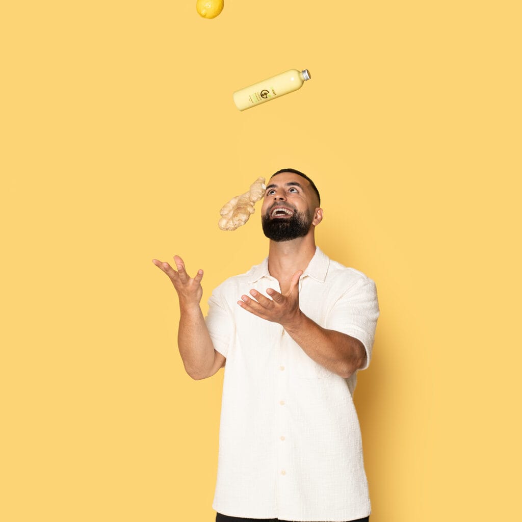 Het verse recept van Gember Member ontstond jaren geleden in de keuken van Abdu’s moeder. Voelde iemand zich niet fit, dan maakt ze daar direct een vers gembershotje voor. Denk maar niet dat wij stonden te springen van blijdschap op zo’n moment, maar voet bij stuk hield ze. “Kom op jongen, neem het, hier word je sterk van.” De moeder van Abdu wist allang dat pure gember ongelooflijk gezond is — als ondersteuning voor je imuumsysteem. 15 jaar later starten wij elke ochtend met een gembershot en stimuleren wij met liefde en passie anderen om hun dag ook vers en puur te beginnen. Het is een simpele manier om in dit ”Snelle” leven iets aan je gezondheid te doen. Onze gembershots zorgen voor een goed gevoel en geven een enorme kick om je dag te starten. Pittig, fris en ondersteuning voor je immuunsysteem.
